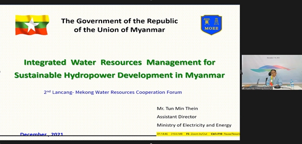 缅甸电力与能源部水电执行司助理主任Tun Min Thein先生作《缅甸水资源综合管理支撑水电可持续发展》报告 | |