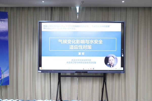 2023年10月31日,中国科学院院士、武汉大学夏军在气候变化与风险管理平行论坛作《气候变化影响与水安全适应性对策》特邀报告。