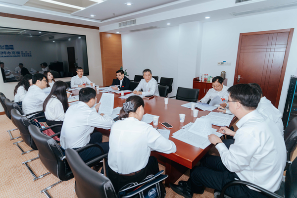 第八代表团进行热烈讨论,团长杨东利主持会议。